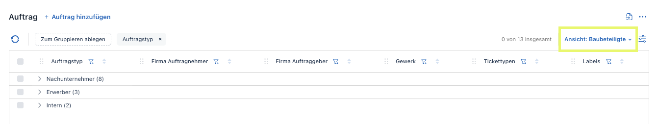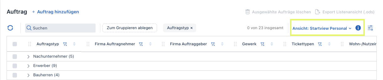 Über die Schaltfläche + Neue Ansicht kann ich eine neue Ansicht erstellen: