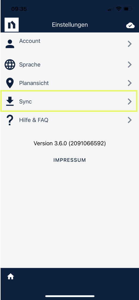 Schritt 2: Ich öffne die Sync-Einstellung