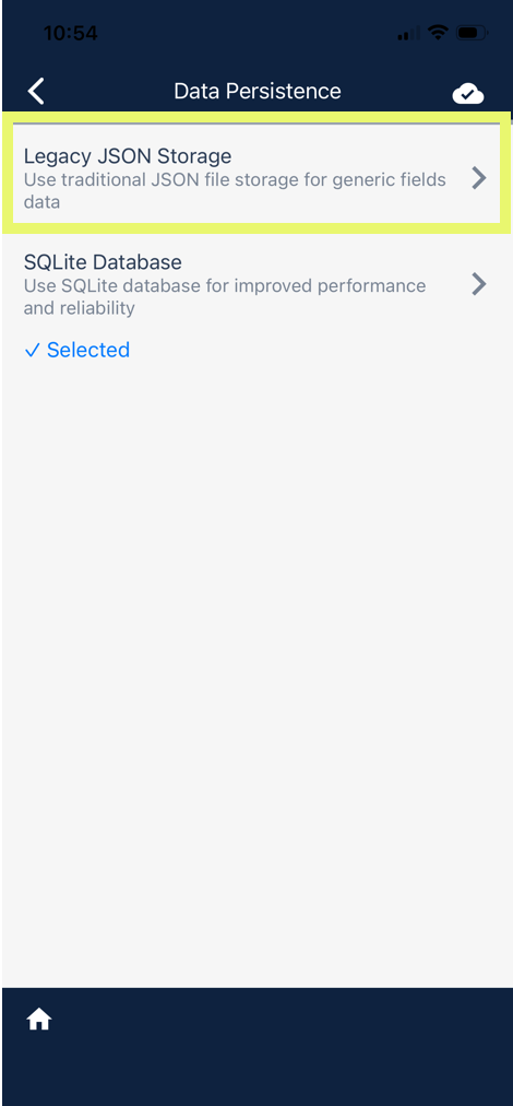 Sollte es damit Probleme geben, kann dies in den Einstellungen > Data Persistence umgestellt werden: