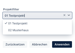 Im Dropdownmenü für den Projektfilter, werden mir alle Projekte angezeigt, zu denen ich berechtigt bin: