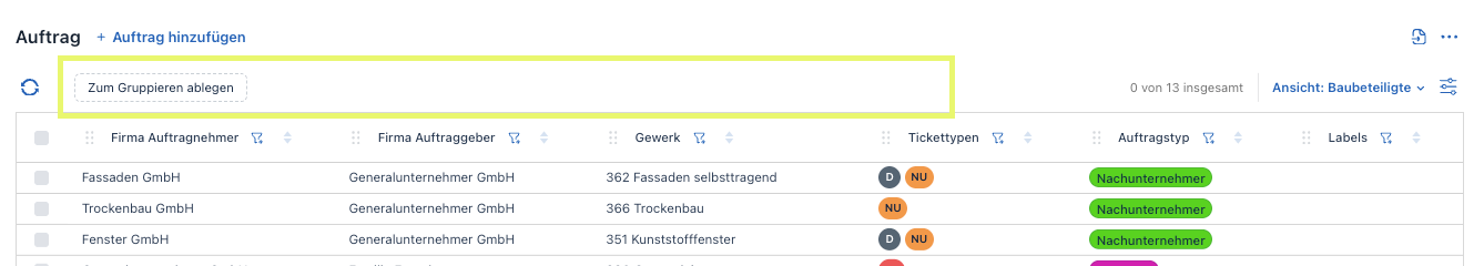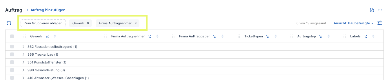 In den Listenansichten habe ich über den Listenköpfen das Gruppierungsmenü: