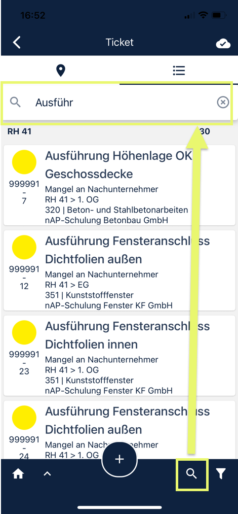 - Die Listenansichten wurden um eine Suchmöglichkeit über das Lupensymbol erweitert.